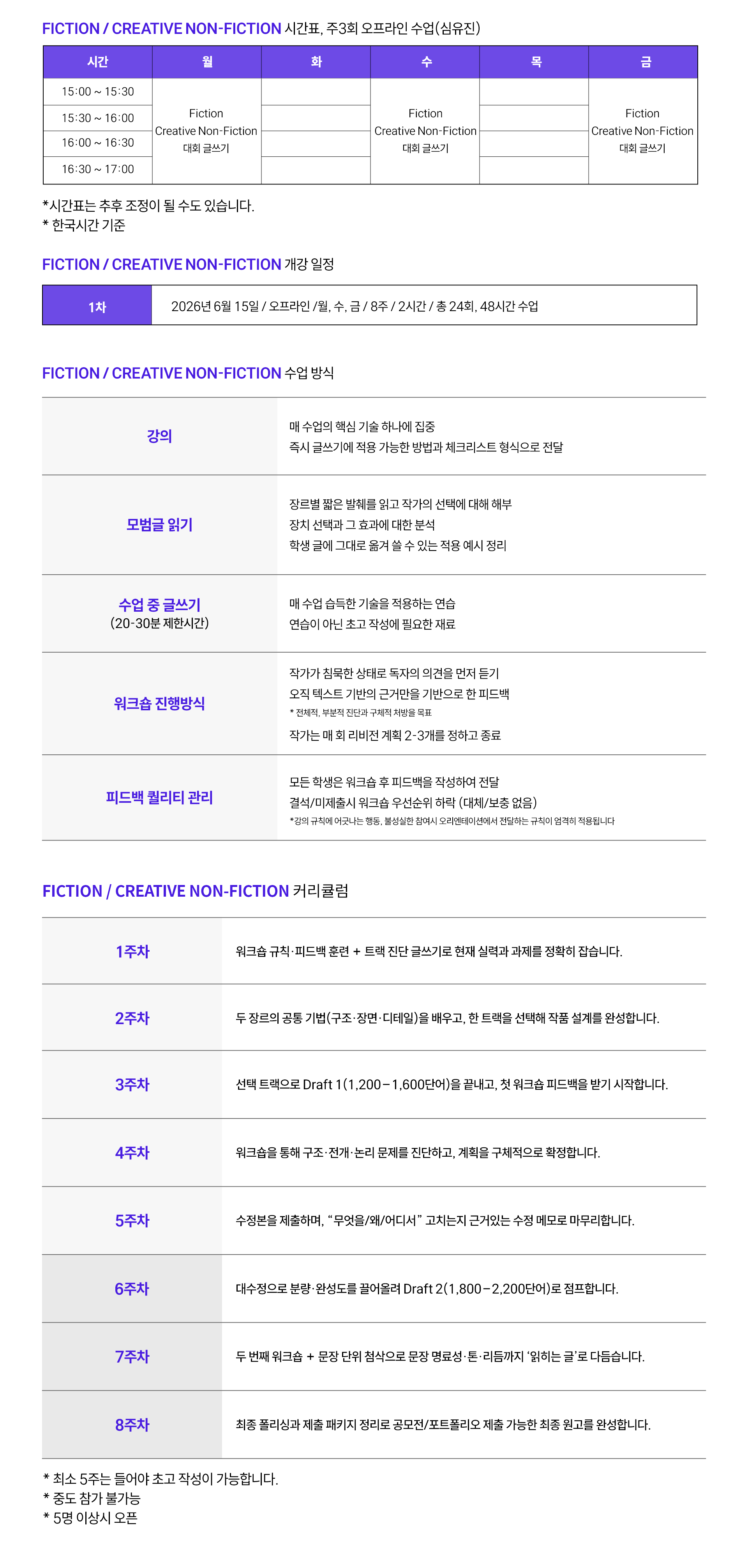 (주 3회 매주 월,수,금 수업 진행 / 총 5주 + 3주 원고완성 커리큘럼 / 6월 15일 개강)