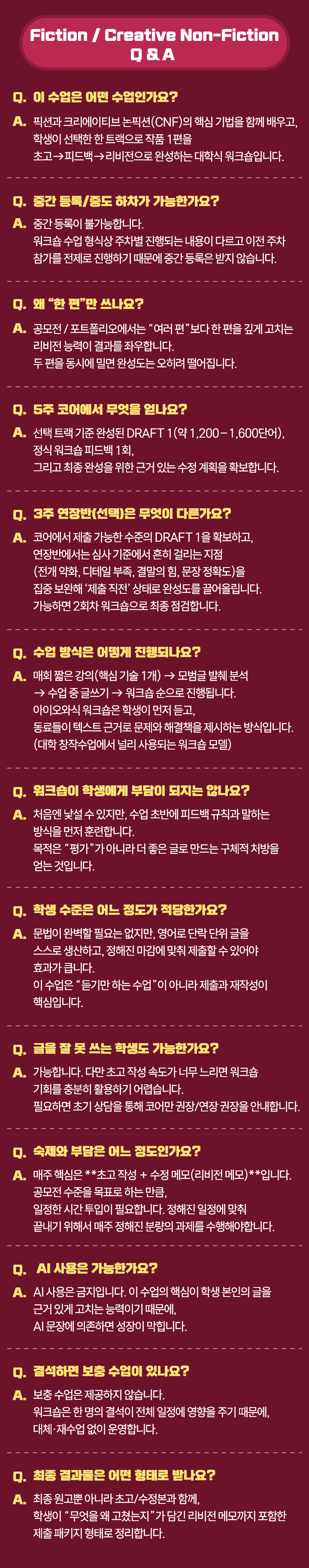 2026 FICTION / CREATIVE NON-FICTION 특강 신청하기